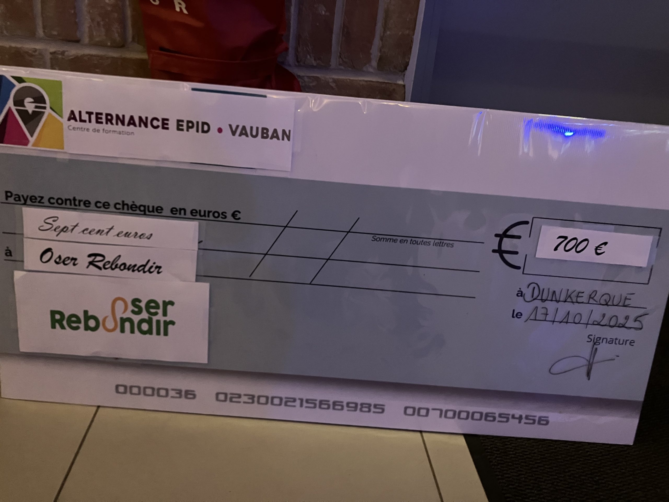 Vendredi 17 octobre 2025, l’association Oser Rebondir a eu la chance de recevoir deux dons exceptionnels de la part des Reutelaeres et du Groupe EPID/Vauban.